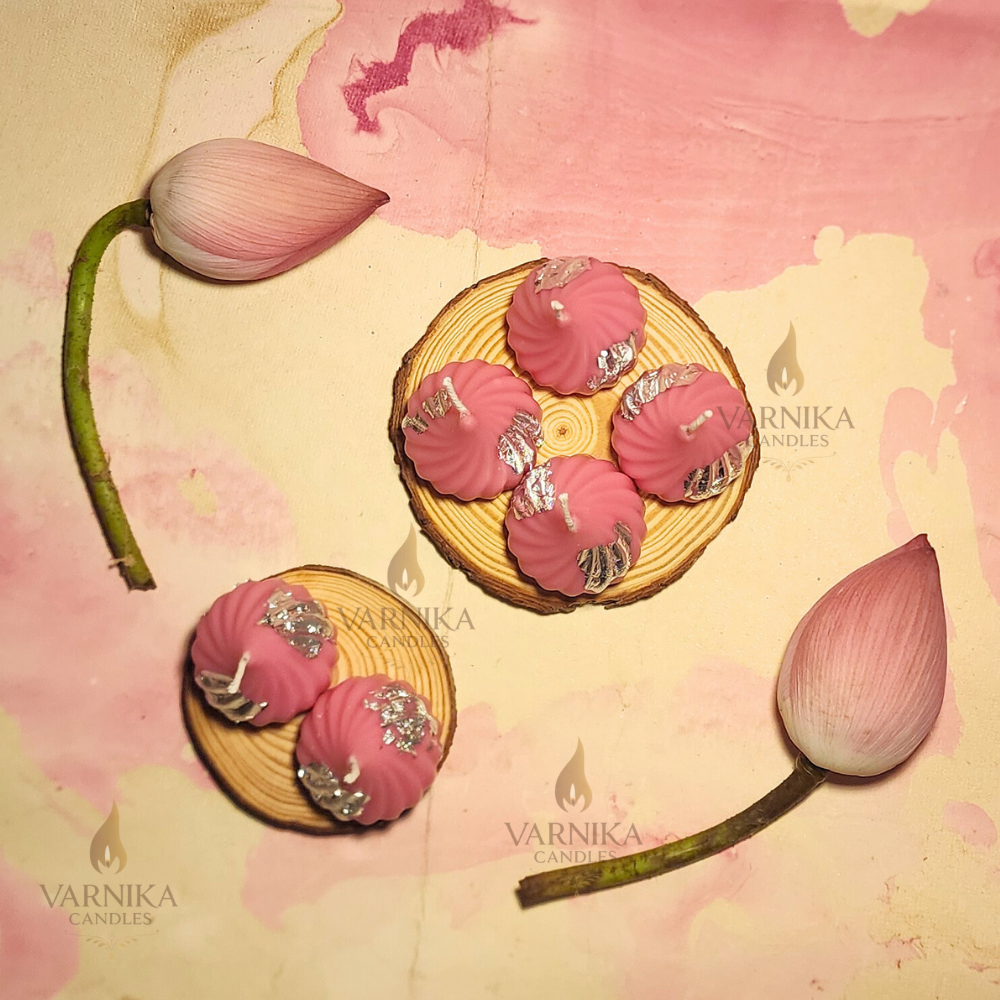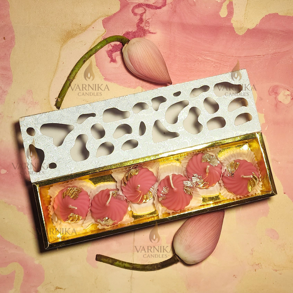 This pack includes 6 handcrafted Pink Modak Candles made with soy wax and rose fragrance, ideal for home décor, puja rituals, and festive gifting.