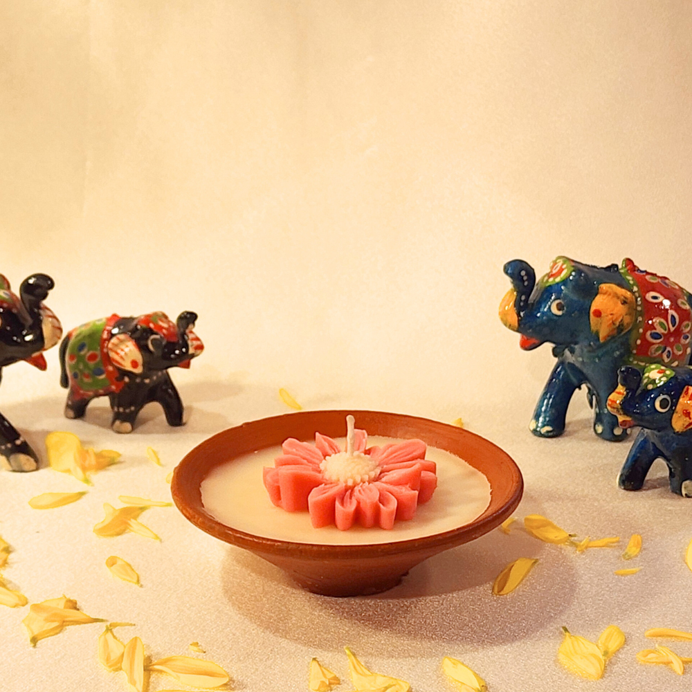 Illuminate your space with the Round Diya Daisy Soy Wax Candle (Tuberose Fragrance)