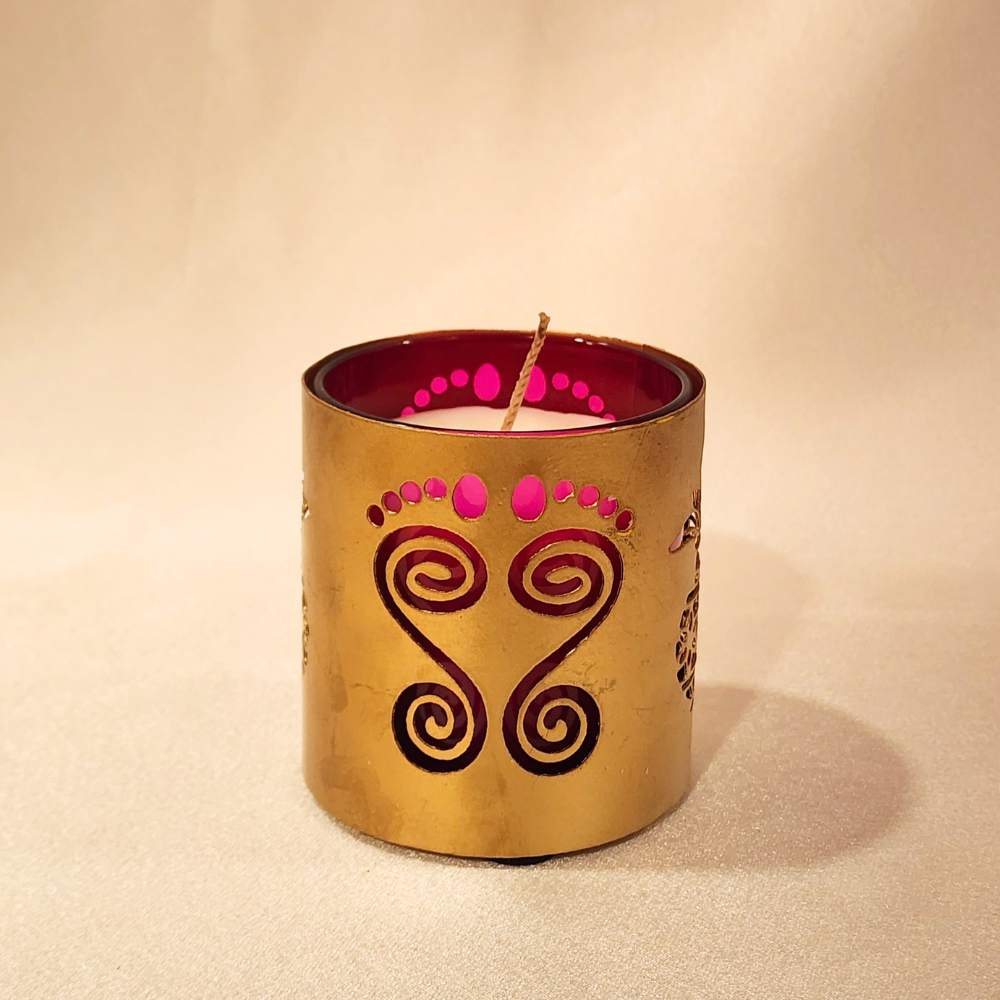 Bring serenity and style to your space with the Votive Glass Jar Candle (Pink – Lavender Fragrance) by Varnika Candles.
