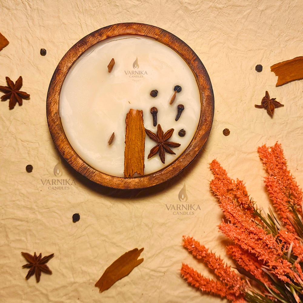 Bring home this Wooden Bowl Candle and let the earthy aroma of sandalwood blended with spice toppings fill your space with warmth, positivity, and elegance.